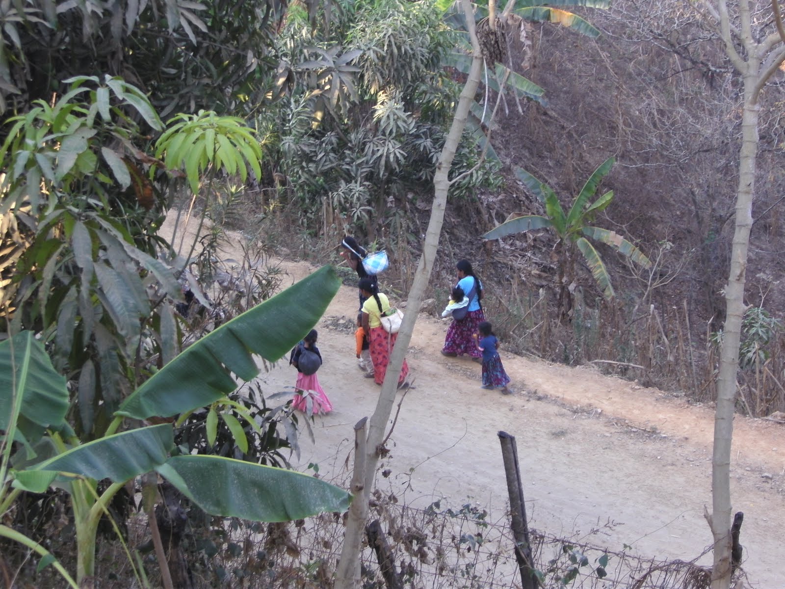 Wedding reception families. Notice the girl hauling the case of beer. The walk down the whole hill alone is a challenge without cargo and who knows how far she carried it before. The little girl with the big smile is Emiliano's grandaughter, Miraella - very sweet and friendly girl.